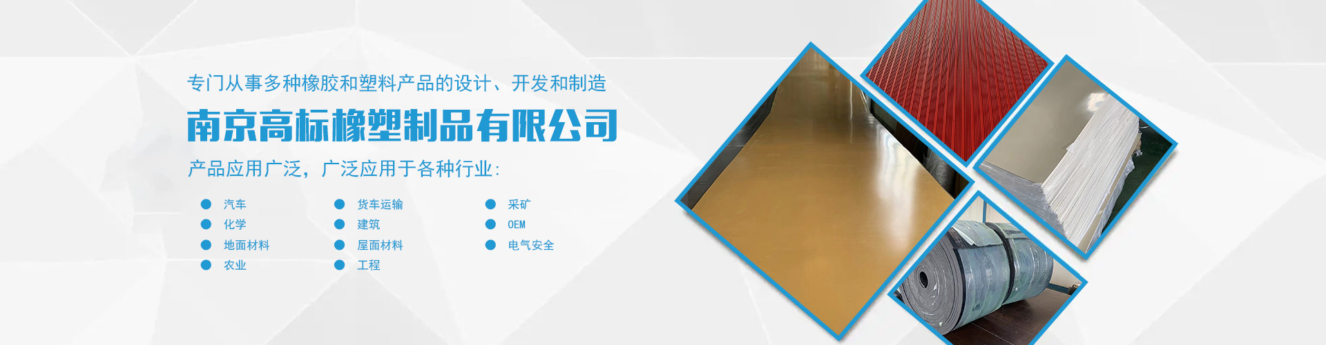 南京高標橡塑制品有限公司是一家專業(yè)的橡膠板、橡膠制品和熱塑性塑料產(chǎn)品的制造商。主營產(chǎn)品:三元乙丙橡膠板,丁腈橡膠版,氯丁橡膠板,丁苯橡膠板,丁基橡膠板,天然橡膠板,硅橡膠板,氟橡膠板,絕緣,防靜電,導電橡膠板,夾布,夾金屬網(wǎng)橡膠板,耐酸堿橡膠板,耐油橡膠板,耐磨橡膠板,阻燃橡膠板,阻尼橡膠板,減震橡膠板,防滑橡膠板,橡膠墊片等。 高標橡塑專門從事多種橡膠和塑料產(chǎn)品的設(shè)計、開發(fā)和制造。我們的產(chǎn)品應用廣泛。廣泛應用于各種行業(yè),包括:汽車,貨車運輸,采礦,化學,建筑,OEM,地面材料,屋面材料,電氣安全,農(nóng)業(yè),工程等。 高標橡塑的客戶服務于許多行業(yè),包括墊片切割、分銷商、工業(yè)用品零售商和批發(fā)商。自
